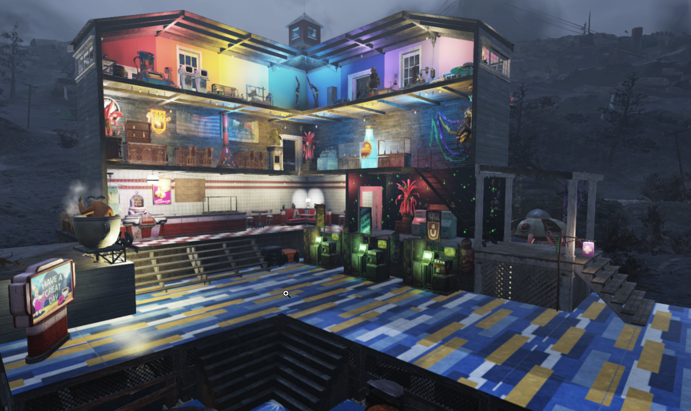 I found a location - I used this one before its up on a cliff over looking whitespring. Its far enough away that I should be safe from getting nukes (whitespring is a semi-typical target) and I think I'm away from any creature spawning. I'm finding pre-fabs are the way to go, simply because you can move the entire building and contents rather easily and they seem to be plop down easier. I found with regular CAMPP builds when I move the saved CAMPs refuse to be placed. I don't know if its a bug, but I've had a lot of issues where the saved building stays red and even when it turns green, it refuses ¯\_(ツ)_/¯