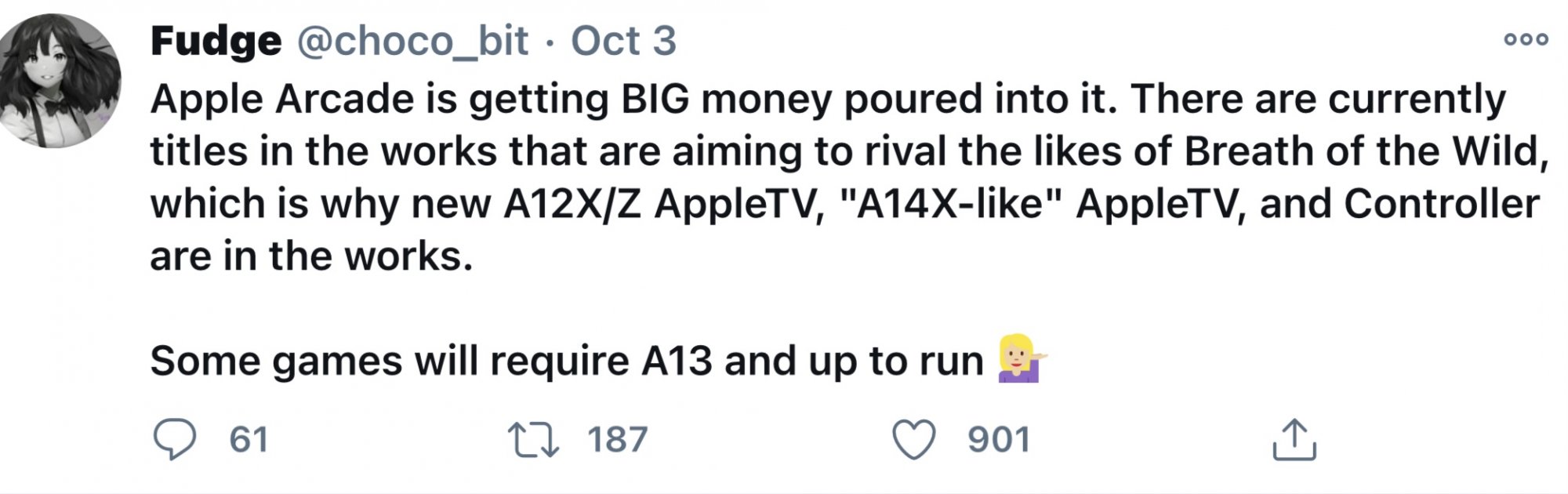 If it weren't for the micro-pauses every now and then I might agree with you.I’m wondering if supporting the now old processor in Apple TV is what is holding back these games from being all they can be. I love asphalt 8 airborne, still a daily play on my Apple TV the graphics and games play are great. Asphalt 9 never made it to the Apple TV, it’s graphically superior and I’m guessing pushed past Apple TV hardware. Does this account for the Animated drawing/borderlands style graphics as opposed to the more photo realistic styles I’m sure many of these games might otherwise use?