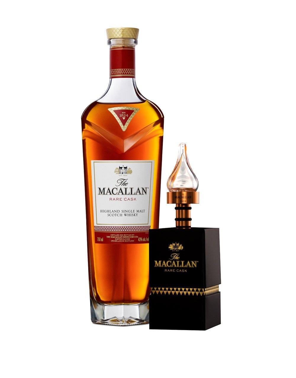 The Macallan Rare Cask stands as an ode to the beautiful natural color and complexity of flavor upon which The Macallan has established its reputation. Rare Cask is crafted using liquid aged in first-fill Sherry Oak casks. The Macallan’s whisky making team hand-selects the finest whisky from less than 1% of the casks maturing at the distillery. The result of this scrupulous selection process is a brilliantly rich, vibrant ruby-red single malt. To celebrate The Macallan Rare Cask, The Macallan has released its fourth annual stopper. The limited edition collector’s item was created by internationally renowned glassware designer Felicia Ferrone in celebration of Peerless Spirit of The Macallan and the unveiling of the new distillery and visitor experience. Purchase a bottle to receive one of these coveted stoppers that fits perfectly atop of the bottle.
