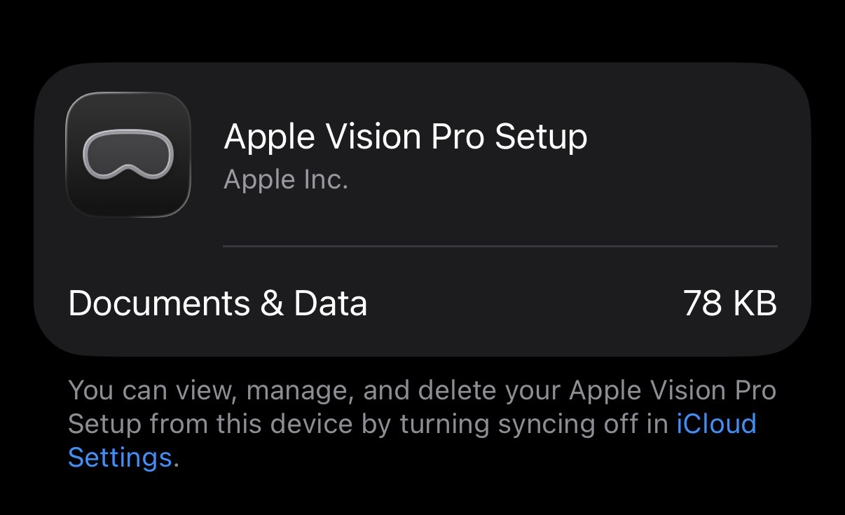This is actually true. Apparently iOS 26 has a small file related to setting up a Vision Pro. But at that size, it’s nothing to worry about.
