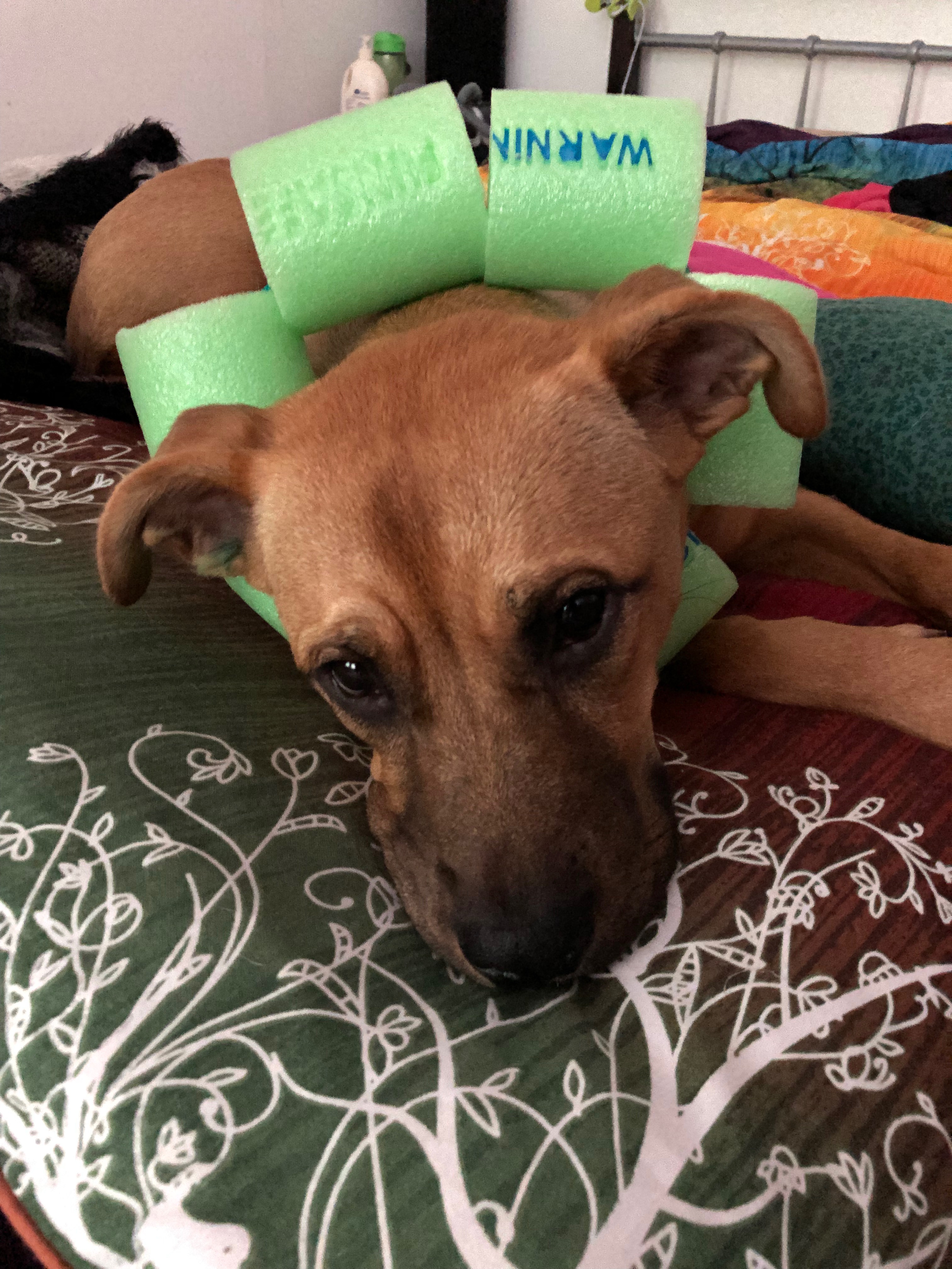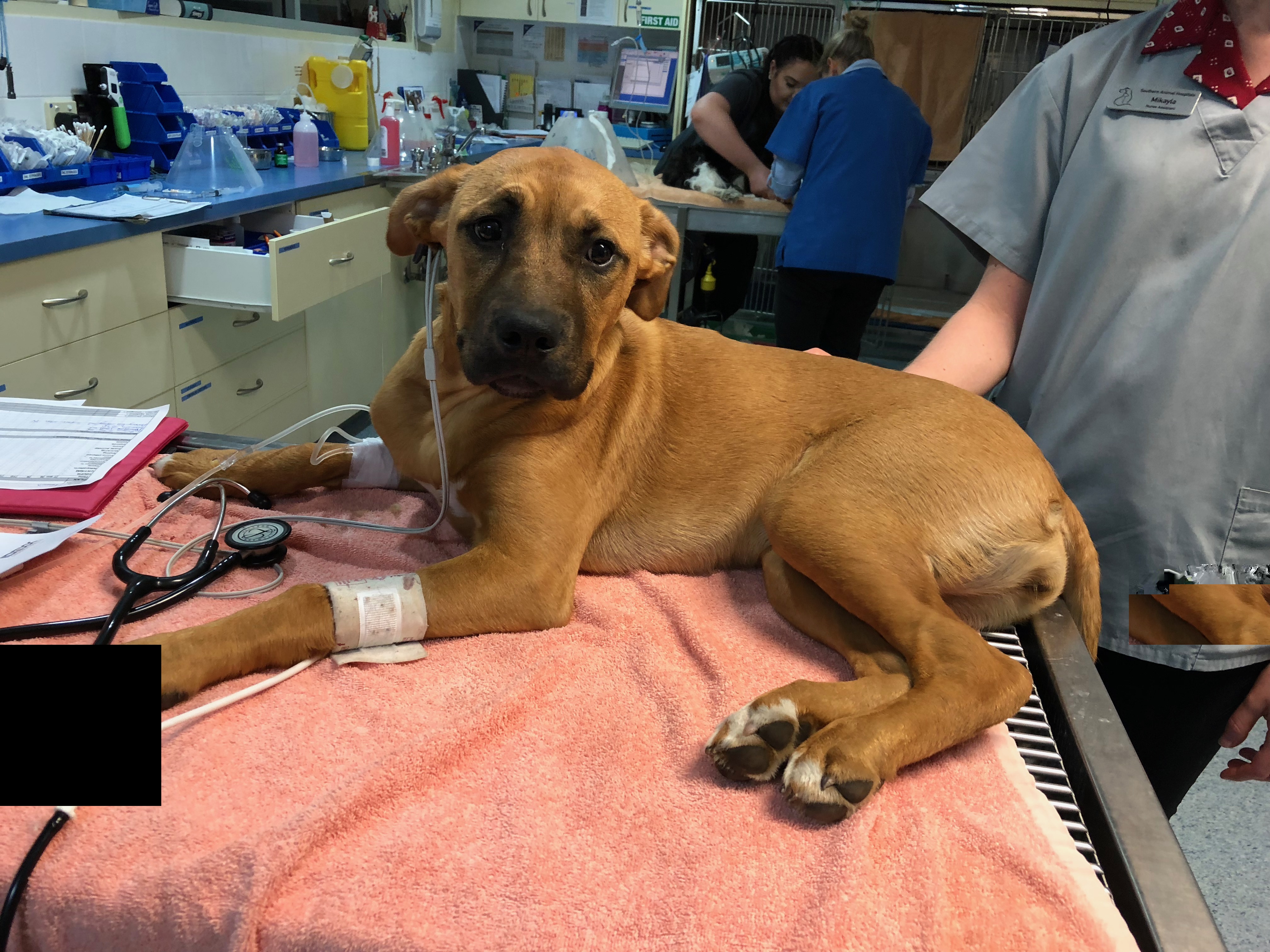 When I got back to pick her up, or see if she had to be transferred to an overnight facility, Fenna was like as though nothing had happened, apart from the little shaved section on the front right leg!