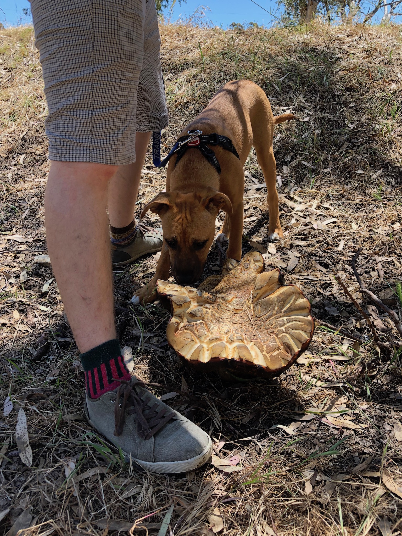 In the major shopping strip in the CBD here, which is an outdoor mall, there are these famous pig sculptures. Fenna had no idea what to make of them & took some coaxing & reassurance from me that they were okay, before she would even get close to them! I think she was waiting for them to move. This is her almost ready to sniff the snout of one.