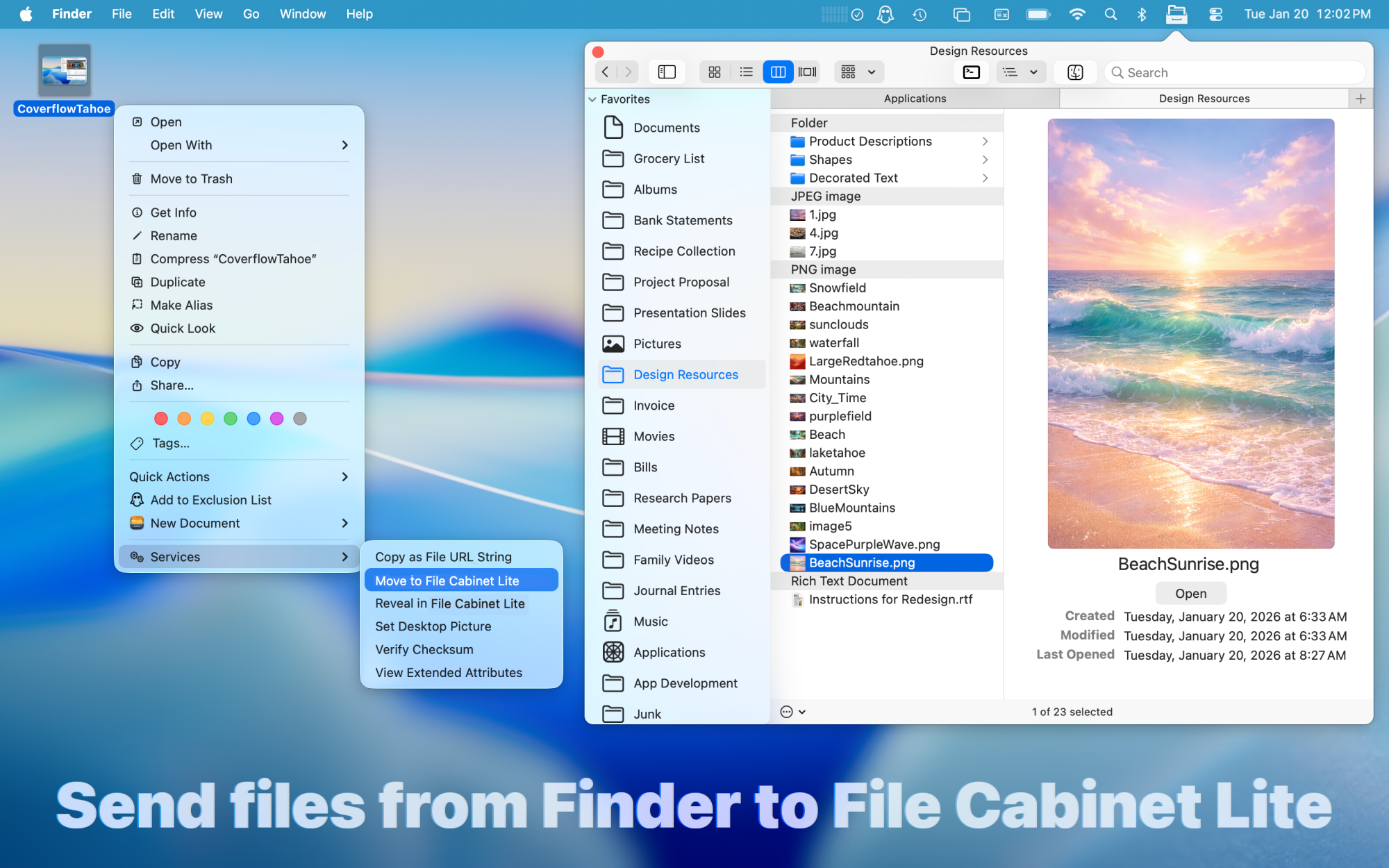 ∙Create text documents from Finder using File Cabinet Pro’s Document Creator Finder extension (Note: To use this feature, you have to enable the Finder extension in System Preferences under the “Extensions” tab).