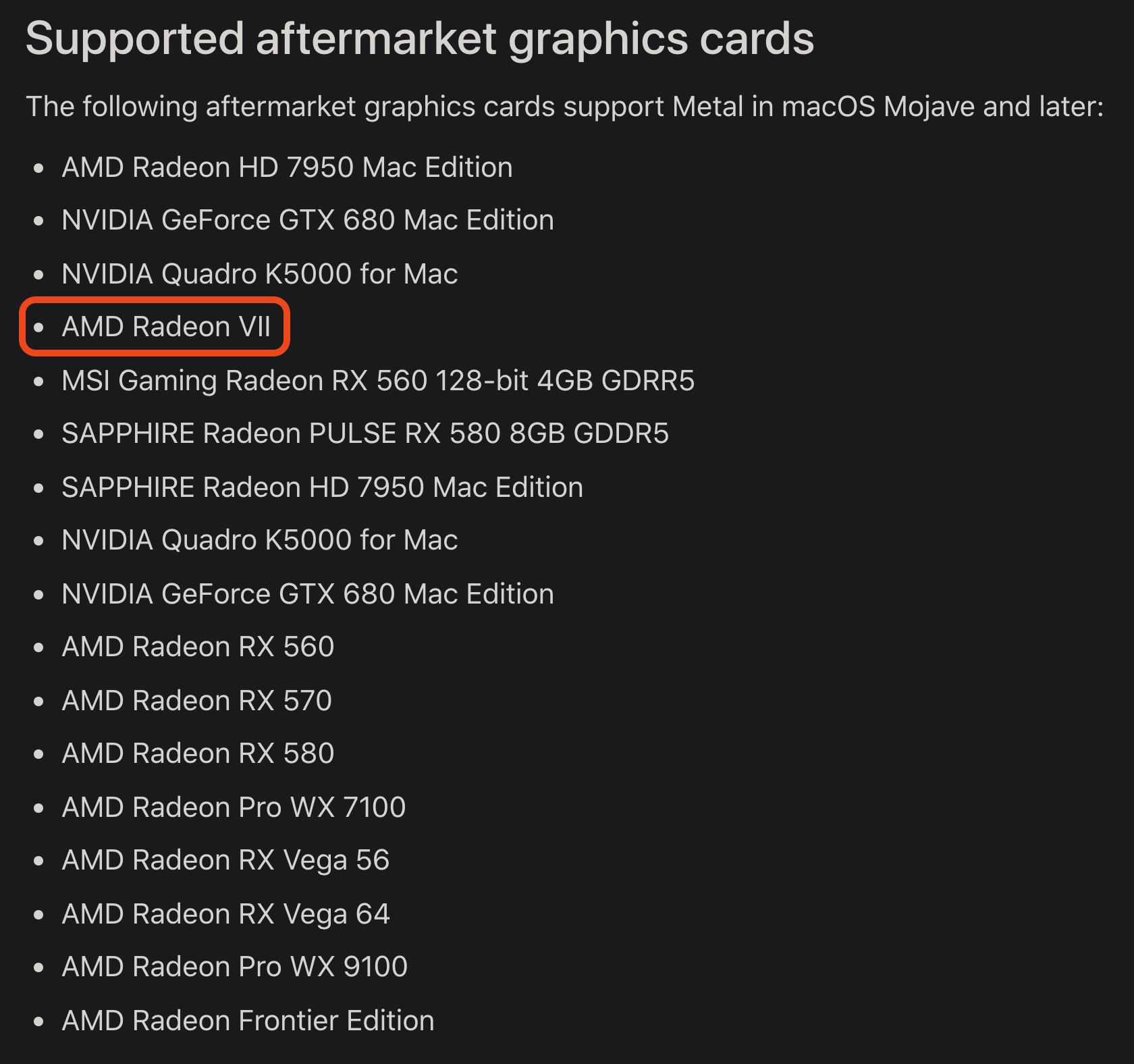I know Resolve allows manual selection of GPUs for compute, but was wondering if anyone has had any experience with using multiple 3rd party GPUs with the latest builds of Final Cut Pro and MacOS. I'm hoping I can leave in the stock 580X to drive the monitor and use a pair of Radeon VIIs or WX9100s for Metal compute in both Resolve and FCP.