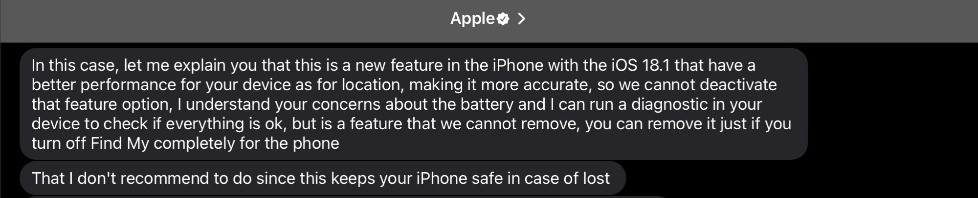 I’m not sure if this is just Find My but the battery drain is dreadful, almost 1% per minute and by this answer I think they won’t attack the issue but only concentrate on Apple Intelligence.