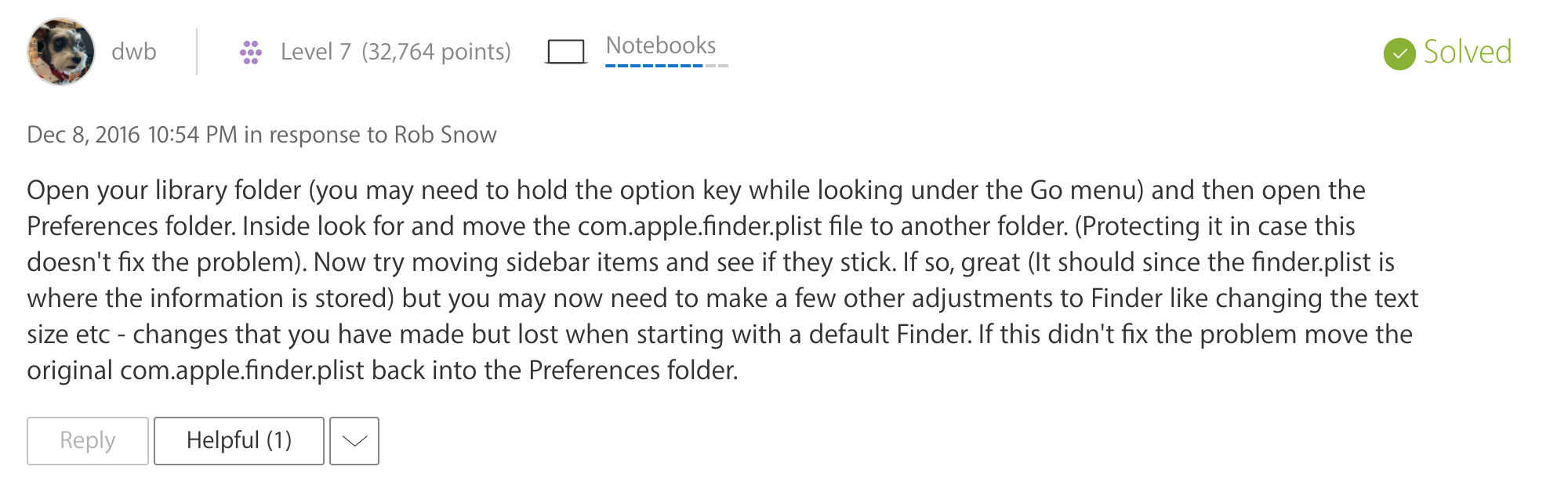 For the past few weeks on Big Sur 11.6 my Finder Sidebar favorites are not saving.