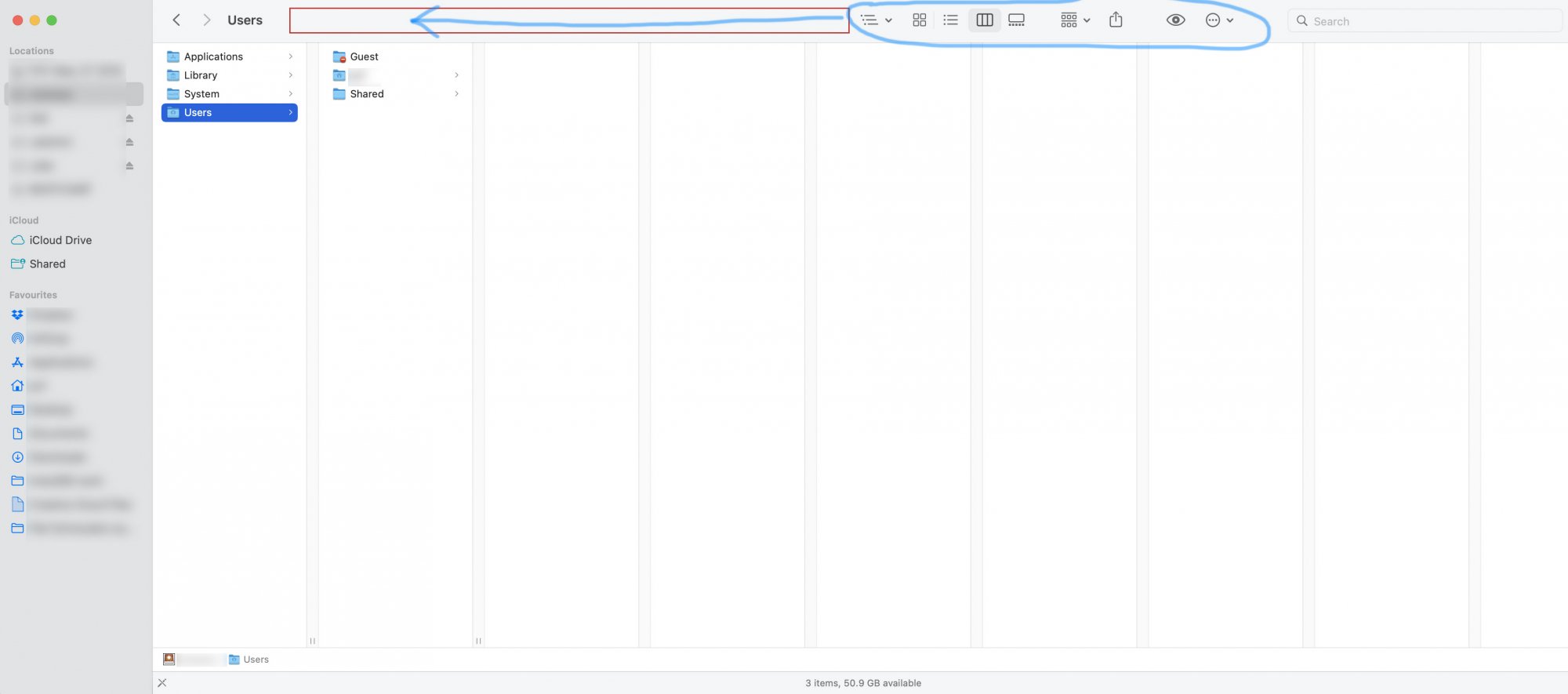 The icons on the Finder window toolbar are all right justified, whereas in Mojave and previous OS versions they were left-justified.