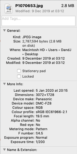 When I was a Windows user, I always took for granted that you could right click on a photo and get the filesize, picture dimensions, and so on.