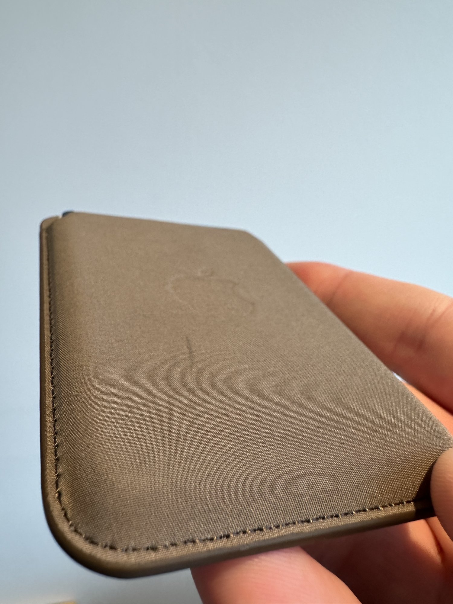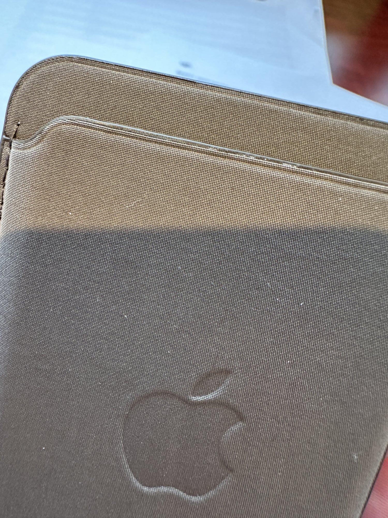 Feels nice in the hand, more like very fine velvet than suede. The front edge has a small lip similar to the leather, one of my dislikes of the Apple cases is the exposed metal frame around the edge. Looks like this will be the same, maybe the different design makes it less. We'll see.