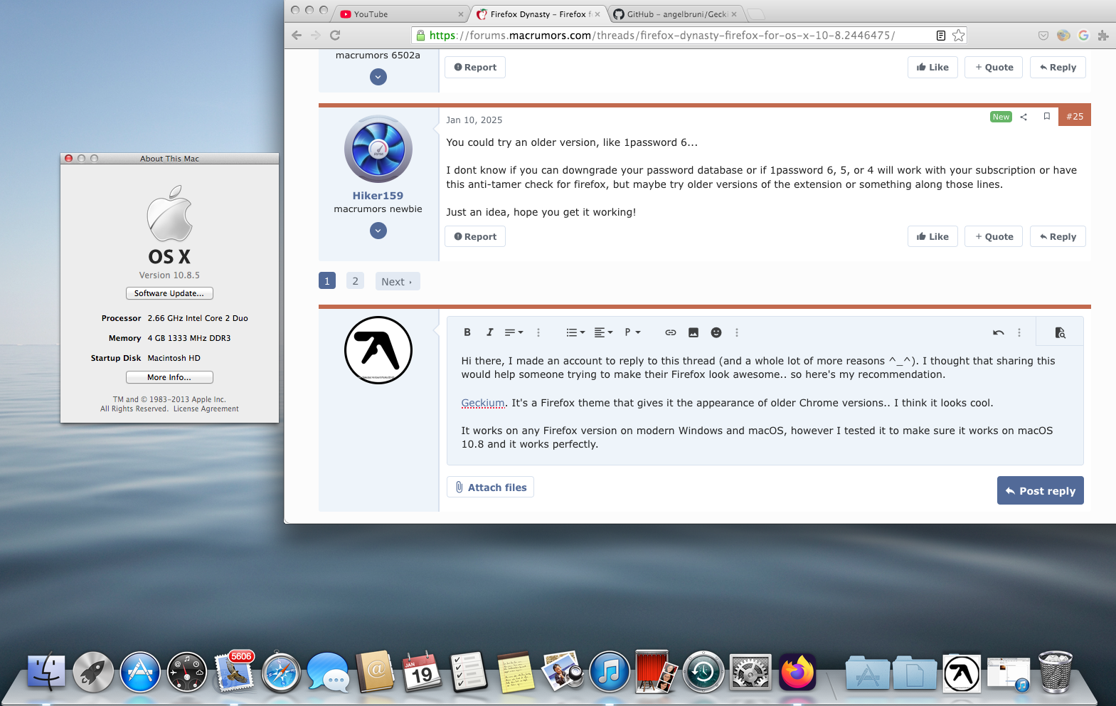 For anyone daily driving an old version of OS X, it is essential to be able to use a modern web browser! As of this writing, none of the major web browsers are compatible with Mac operating systems older than macOS 10.15 Catalina.