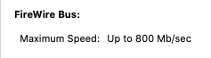 Just picked up a Sony Handycam DCR-TRV460 to convert my old analog tapes to digital. While waiting for my Thunderbolt to FireWire adapter to arrive to try the camcorder on my M1 MacBook Air, I decided to try to connect the camcorder to my 2012 MacBook Pro that still has a FireWire port built in, and unfortunately its failing to recognize it. When I plug it in before starting up macOS, it shows this message in System Information