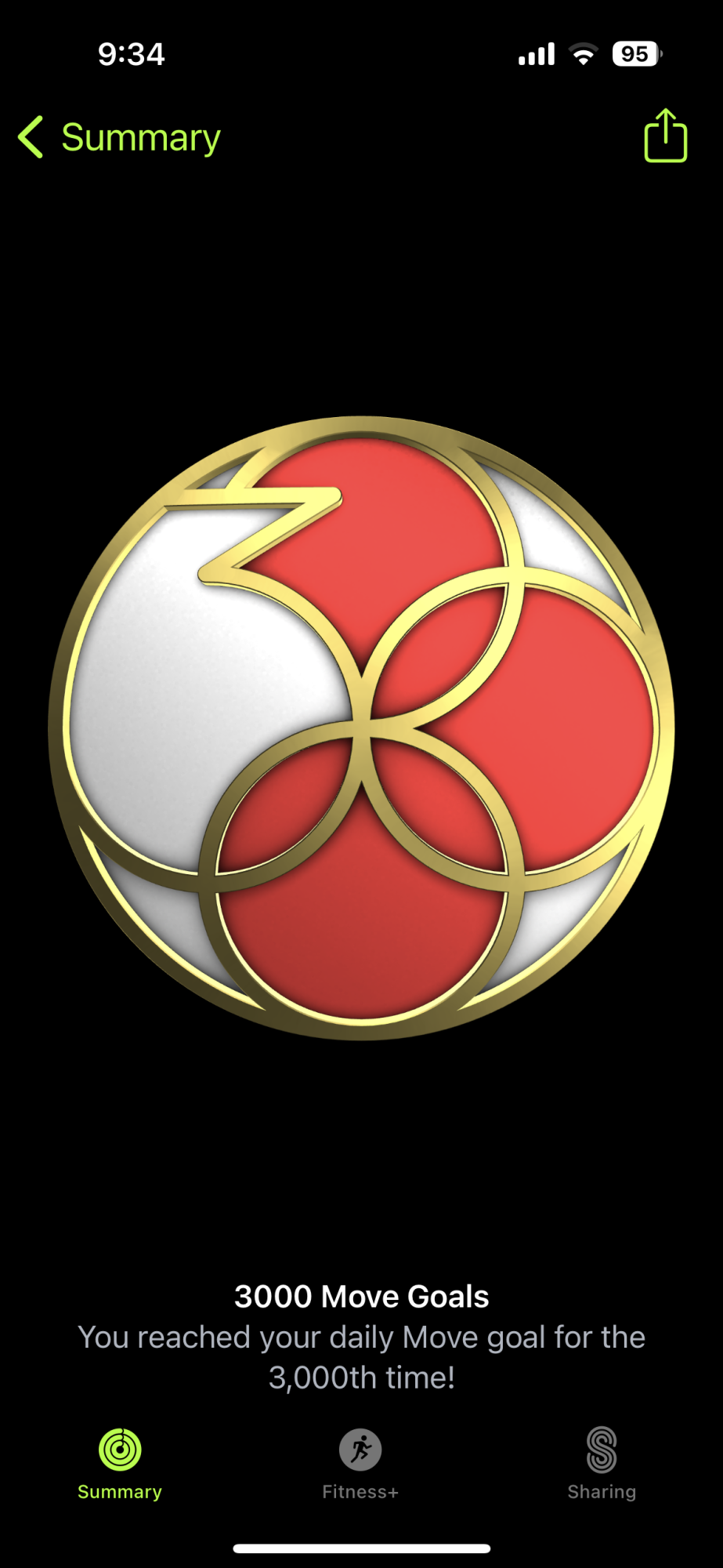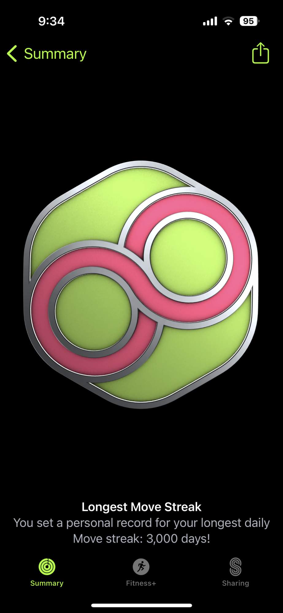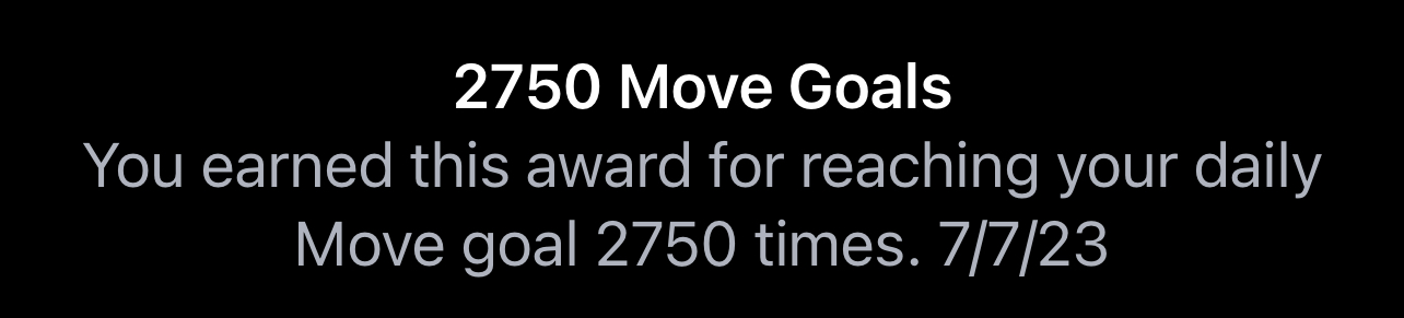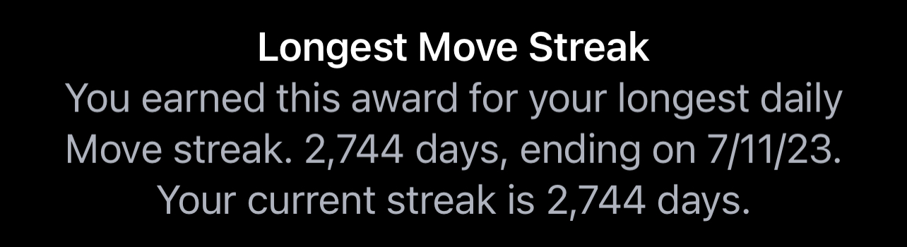 Today I received my 1000 day move goal reward. Of course, my "Longest Move Streak" is also 1000 days.