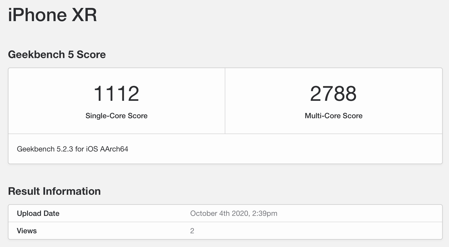 FWIW, I just ran GB5 on my wife's iPhone XR again, and this time it got 1112 / 2788.