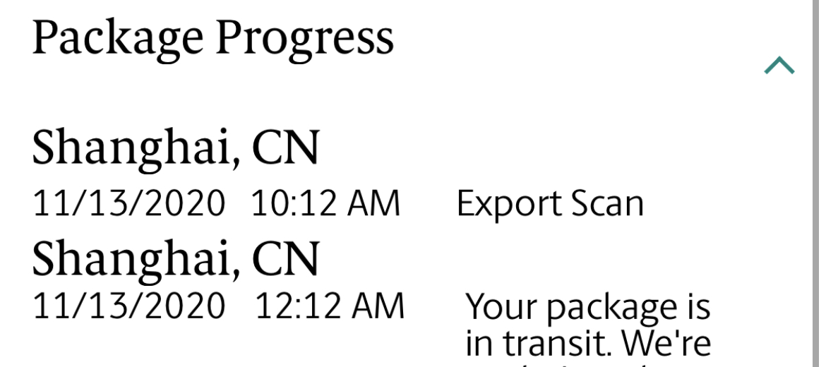 Same here. Mine was scheduled for delivery Monday as well. This morning, when I did a check, UPS website said it was in transit. The detailed tracking at UPS says the package is still somewhere in Shanghai.Anyone else’s MacBook fall off the radar? I was scheduled for a Monday delivery but now UPS is showing no delivery date with a “check back later for scheduled delivery” message for the past 24hours almost.