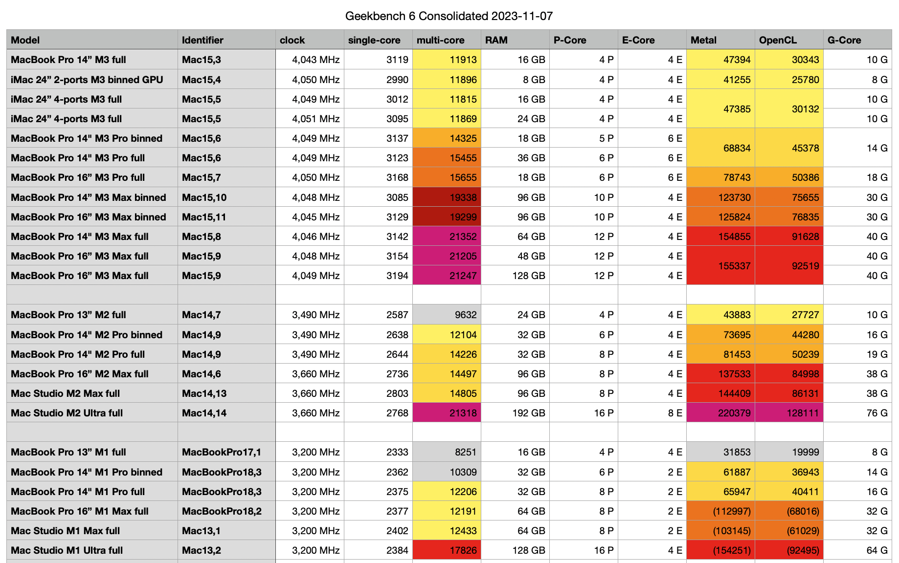to be clear, I'm merely comparing the metal scores listed in the chart that was posted to scores on the Geekbench metal charts.