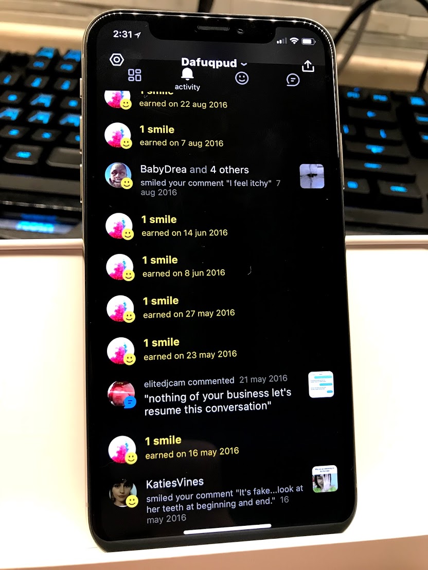 iFunny - you can see status bar area effects the title section of the app. Easy fix in an update, not a real problem.