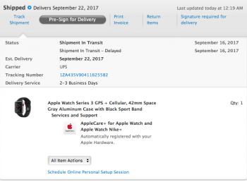 My watch3 still shows preparing for shipping on apple website and UPS tracking shows a shipping label created but not received by UPS facility yet. How is it going to make delivery by Friday? Anyone else still stuck in preparing for shipping status?