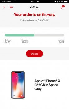 Ya I got my shipment notice too now from Verizon, shows next day like my wife’s shipment info. But FedEx shows delivery on Nov 3rd with the same special shipper information(probably Apple)