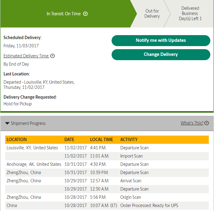 I think we originated from the flight from China to Anchorage. Tracking during this event has not been what I expect from UPS normally.