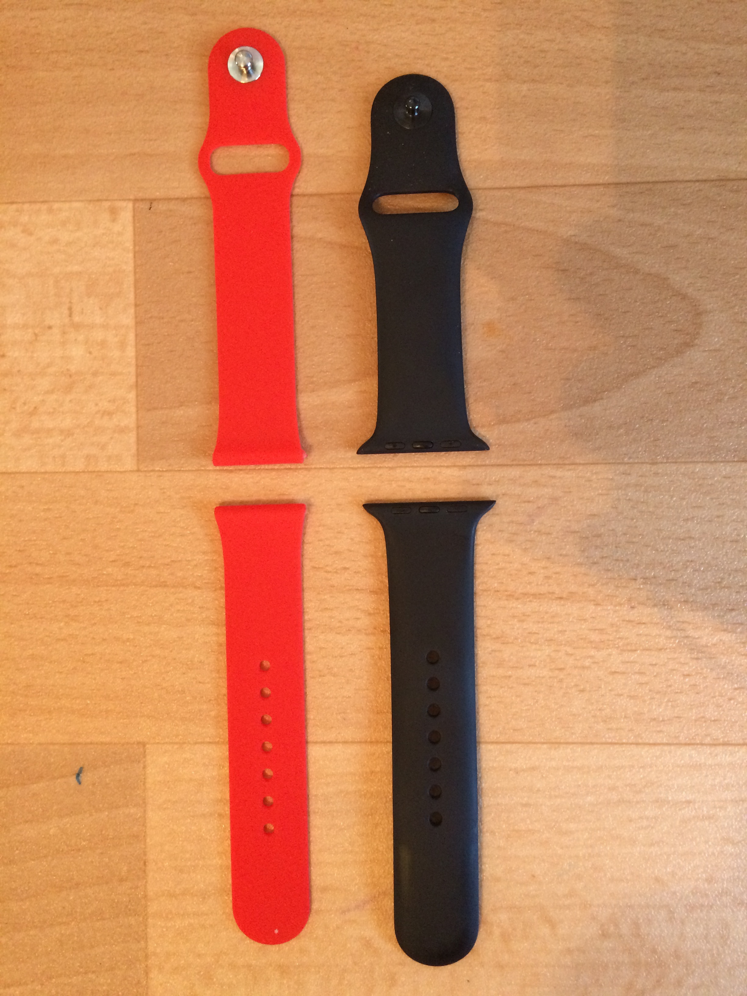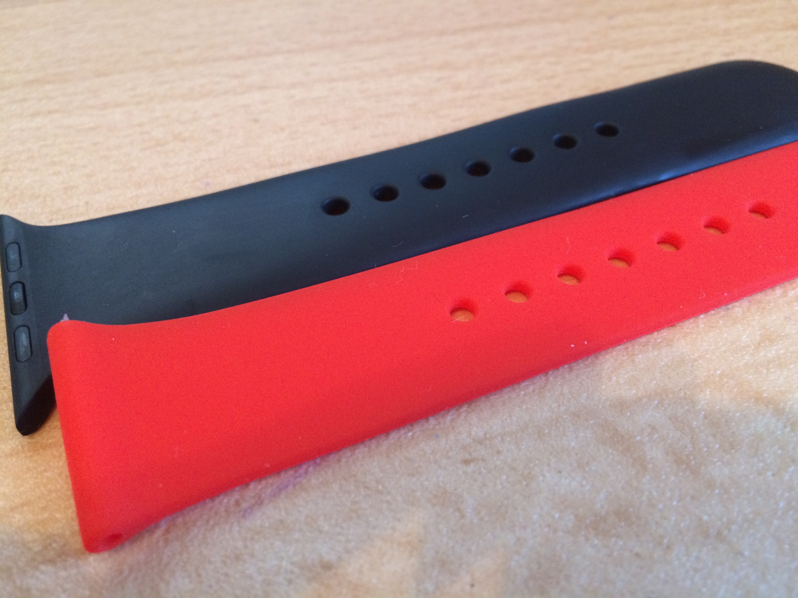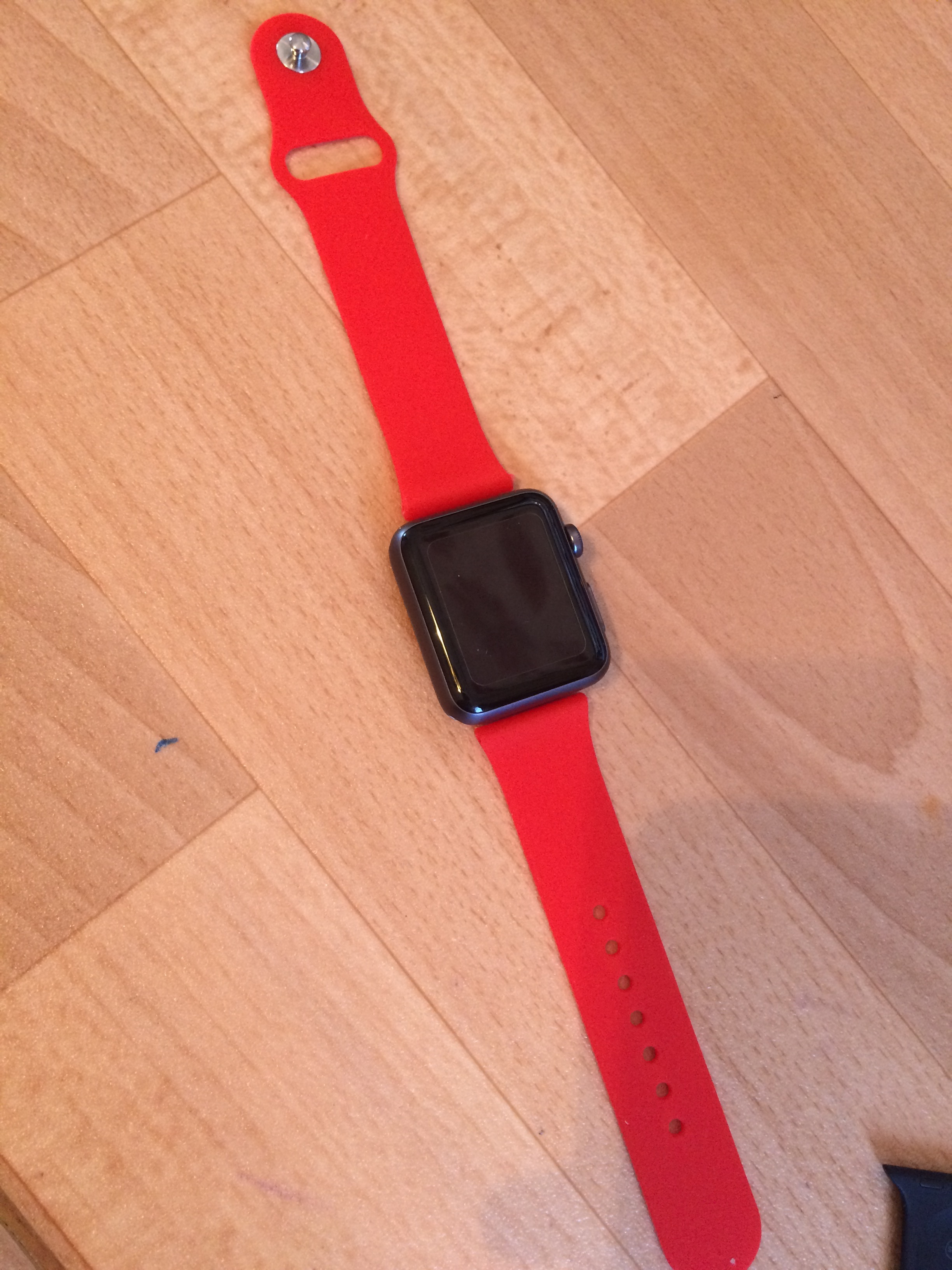 Mesmerised by the look of the red sport band shown off by Jony Ive, I took the plunge and bought a 3rd party sport band, in red, on eBay. It was just under £5 and it seemed silly not to.