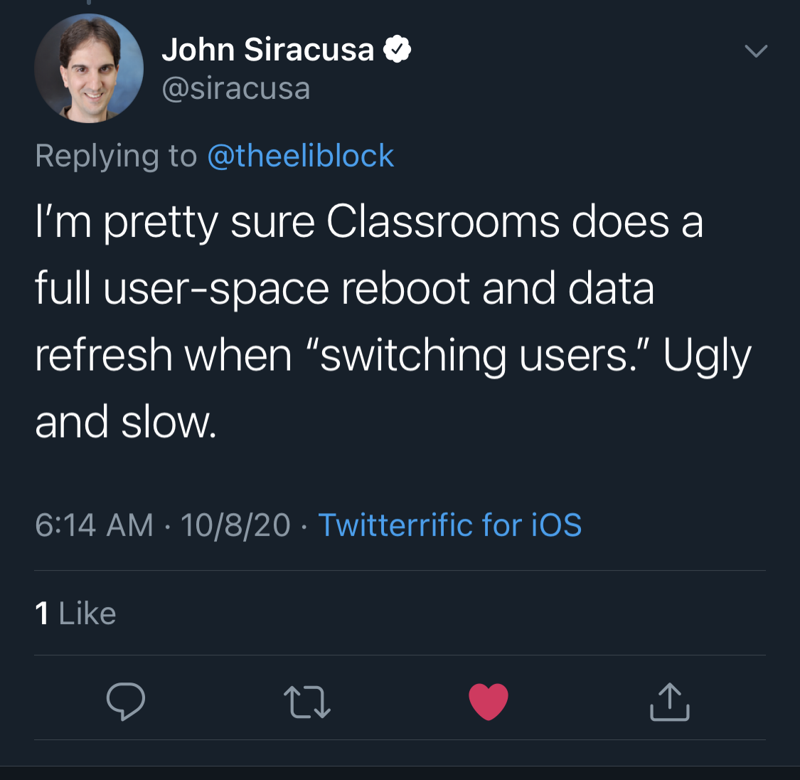 It’s so bizarre the places the Apple ecosystem is fractured, and this is one of the most glaring. Multiple users is a pretty great experience on a Mac, but terrible on Apple TV, and just nonexistent on devices even though screen time is there.All of these, but multi-user is to me the big one. An iPad can be both a communal and personal device at the same time, in particular in a family. My kids don’t need access to my email, any more than my partner does. And even if access isn’t problematic per se, it would still be helpful to keep accounts separate for a variety of reasons. Same goes with messages, photos, even apps.