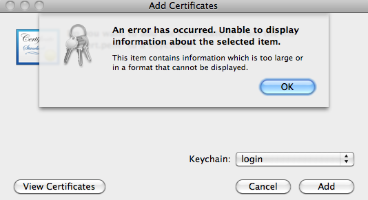 I should add that I’m mostly just testing the add of this certificate on a 10.6.8 system, even though I was hoping to use it on a Leopard Mac.