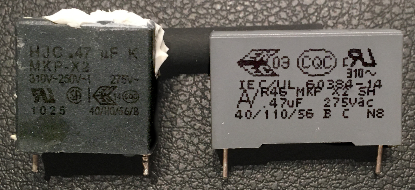 The culprit were 3 interference suppression capacitors (MKP-X2 0,47µF 275V).