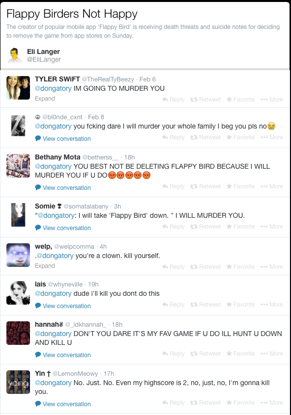 The second news story you've made about taking it down? Ridiculous! This is an app whose author very likely used bots to artificially inflate the game in app rankings with fake 5-star reviews, thus causing it to go viral. He also basically ripped off the look of Super Mario Brothers.