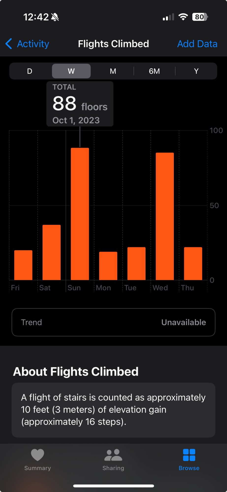 i see you are using the Health app to view the flight data. for me there was also the problem that the data being reported in the iPhone Health app did not match the flights shown on the Watch. but that problem also got resolved.
