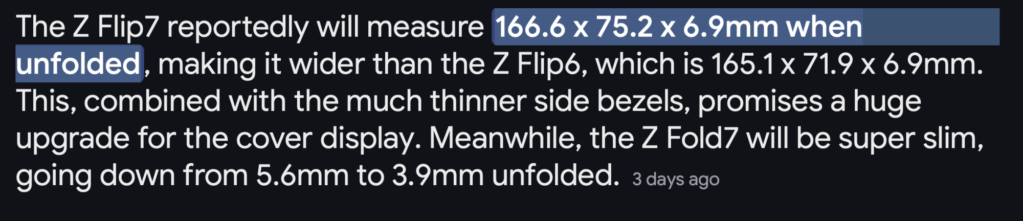 Then it would be similar the size of a Samsung Galaxy Z Flip - not bad in size and form - 166.6 x 75.2 x 6.9mm when unfolded.