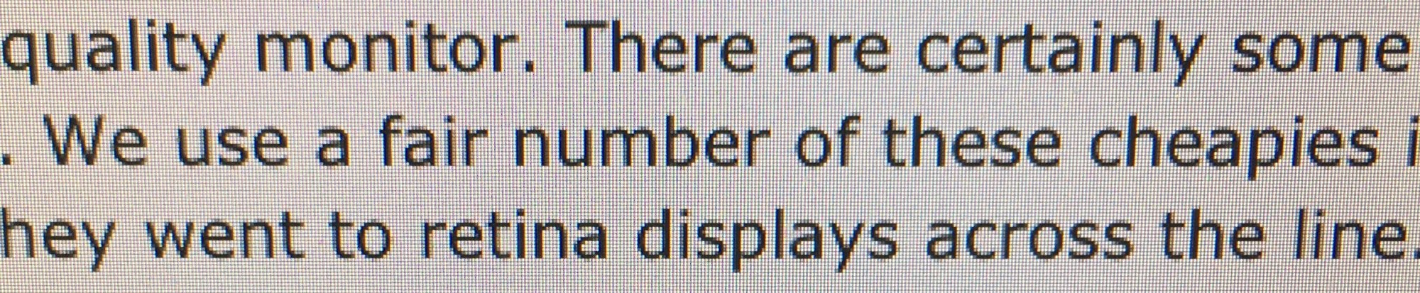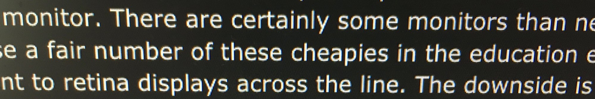 https://forums.macrumors.com/threads/the-subpixel-aa-debacle-and-font-rendering.2184484/ 5) MacOS and Windows font rendering has always been different and it's always been a bit jarring moving between the two. You may just need time to adjust. But don't be surprised if it's always a bit of a transition when you move back and forth a lot like I do. 6) Improperly adjusted monitor. It's often tempting to keep the contrast set way up to make colors 'pop' nice and vibrant, but this can really mess up the edges of text. Make sure you don't have your basic monitor adjustments set improperly. It's an easy mistake to make, and your settings that worked on your Windows box may not work well at all when that same monitor is connected to your Mac, so be prepared to play both with the software calibration and the hardware settings.