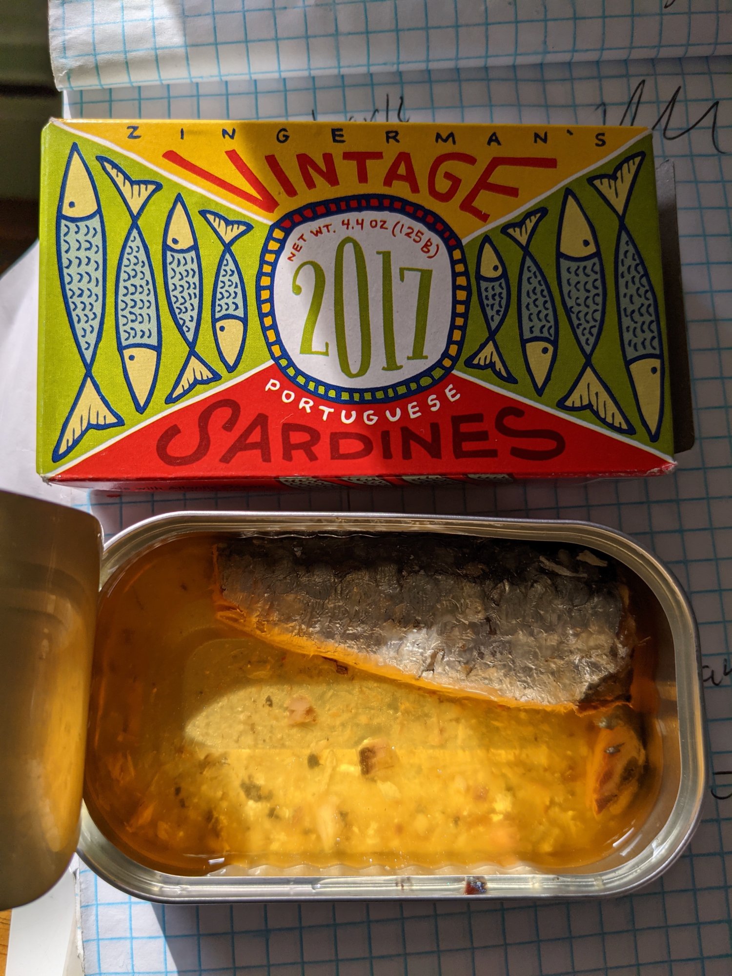 Sorry forgot to take a pic at first, man these things are really good. Aged tinned fish, hmmm what could go wrong. Seriously delicious for real, best tinned/canned sardines I have had in a while.