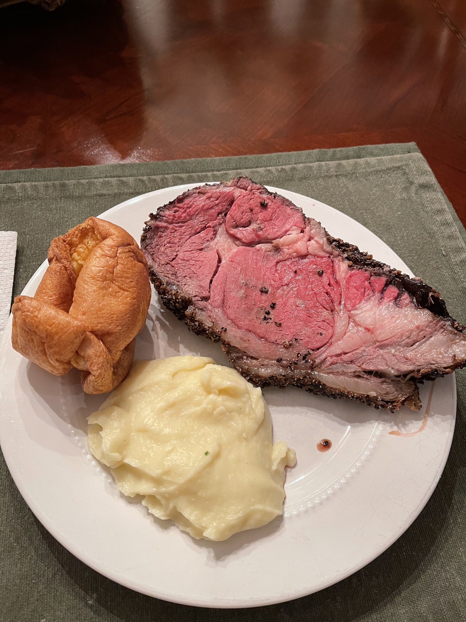 Is the oatmeal cream pie that thing top left? It looks like a miss-shaped yorkshire and made me wonder where all the gravy wasWent to another one of my favorite restaurants for curbside pick up( chef/owner is the same one as my other favorite restaurant). Prime rib, potatoes, sautéed spinach, Caesar salad, oatmeal cream pie, and paired with red wine( I don’t drink, but dad enjoyed it). It was delicious.