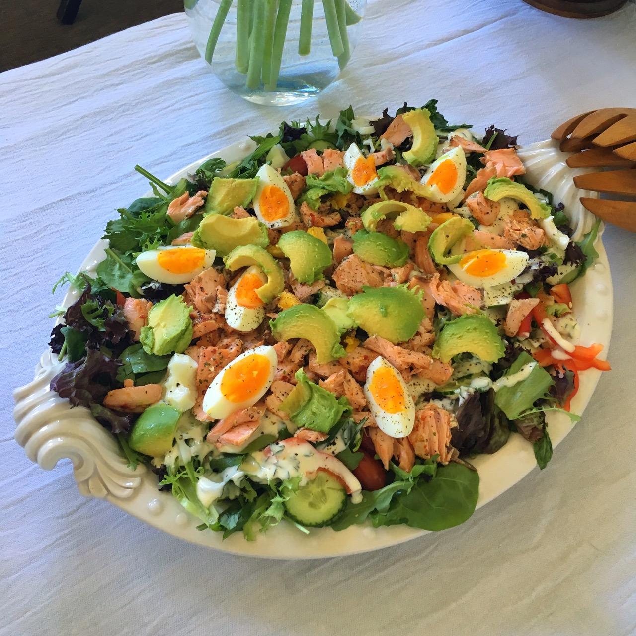 First, a three hour walk and then home to a lovely Salmon salad with a crisp Chilean Sauvignon Blanc. Chocolate and nuts for dessert.