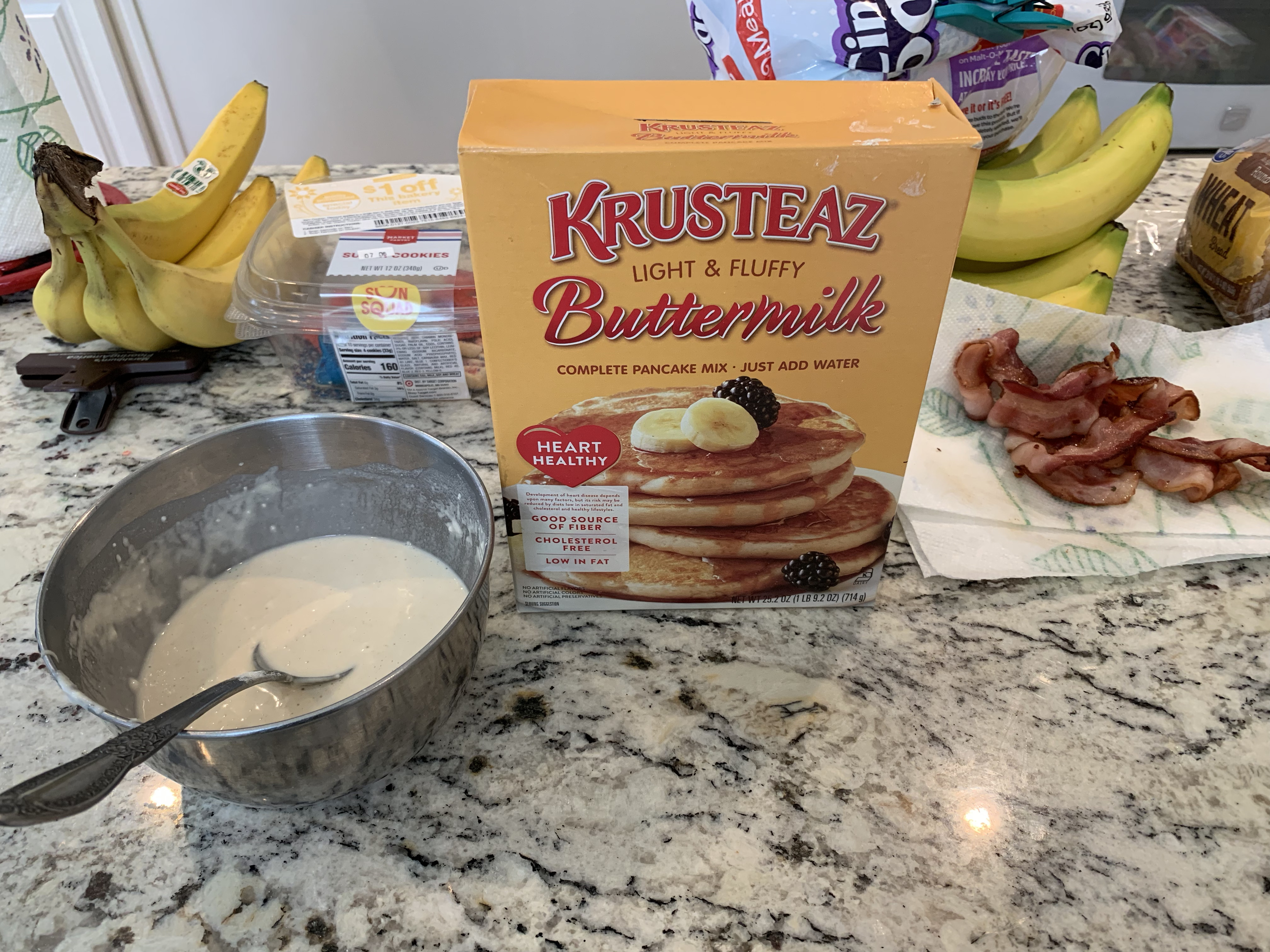 I was horrified not to be able to find Krusteaz Buttermilk Pancake mix at the local Kroger's. Fortunately the local HEB grocery had it. A close one.I love this mix because everything is in it, you don't have to add milk, oil, or an egg. The brand originated in Seattle, Washington in the 1940s. At my local grocerys this is the only brand that comes complete.