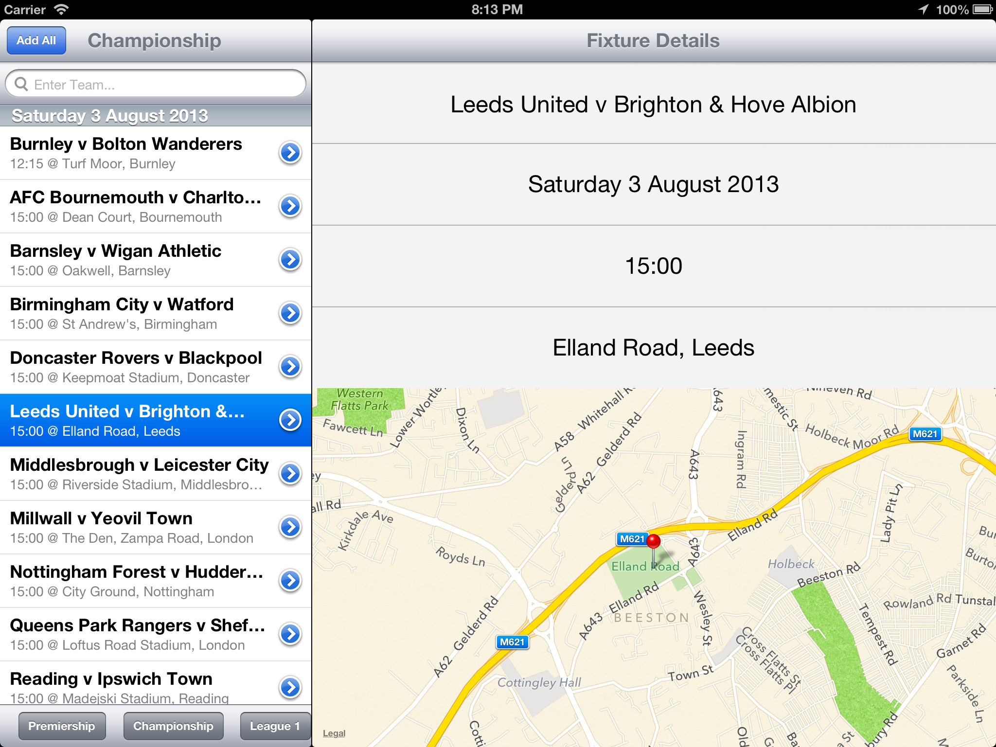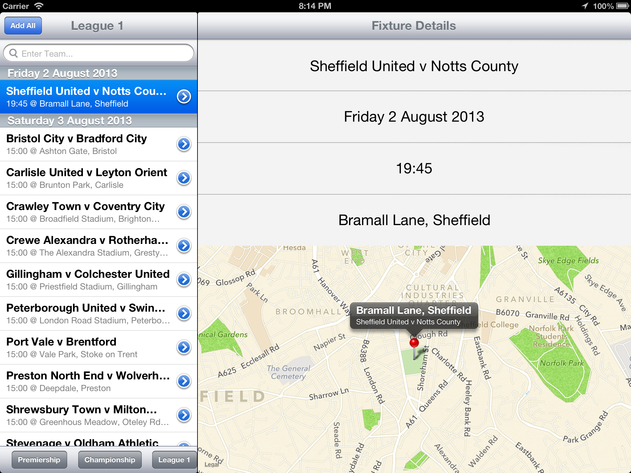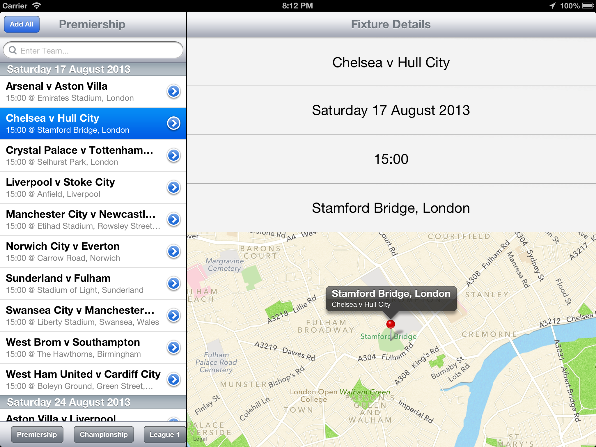 Some screenshots are also attached.View the complete fixture list for the 2013/2014 Premiership, Championship, League 1 and League 2 seasons right on your iPhone! You can also add any match to your iPhone calendar, therefore you won't miss a match all season!