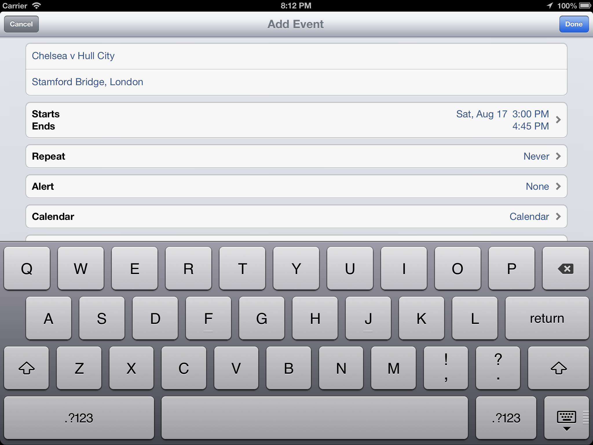 You can add fixtures to your iPhone calendar via 2 methods: First you can select each fixture and add one at a time. Alternatively you can press the 'Add All' button and all that League's fixtures will be added in one go.