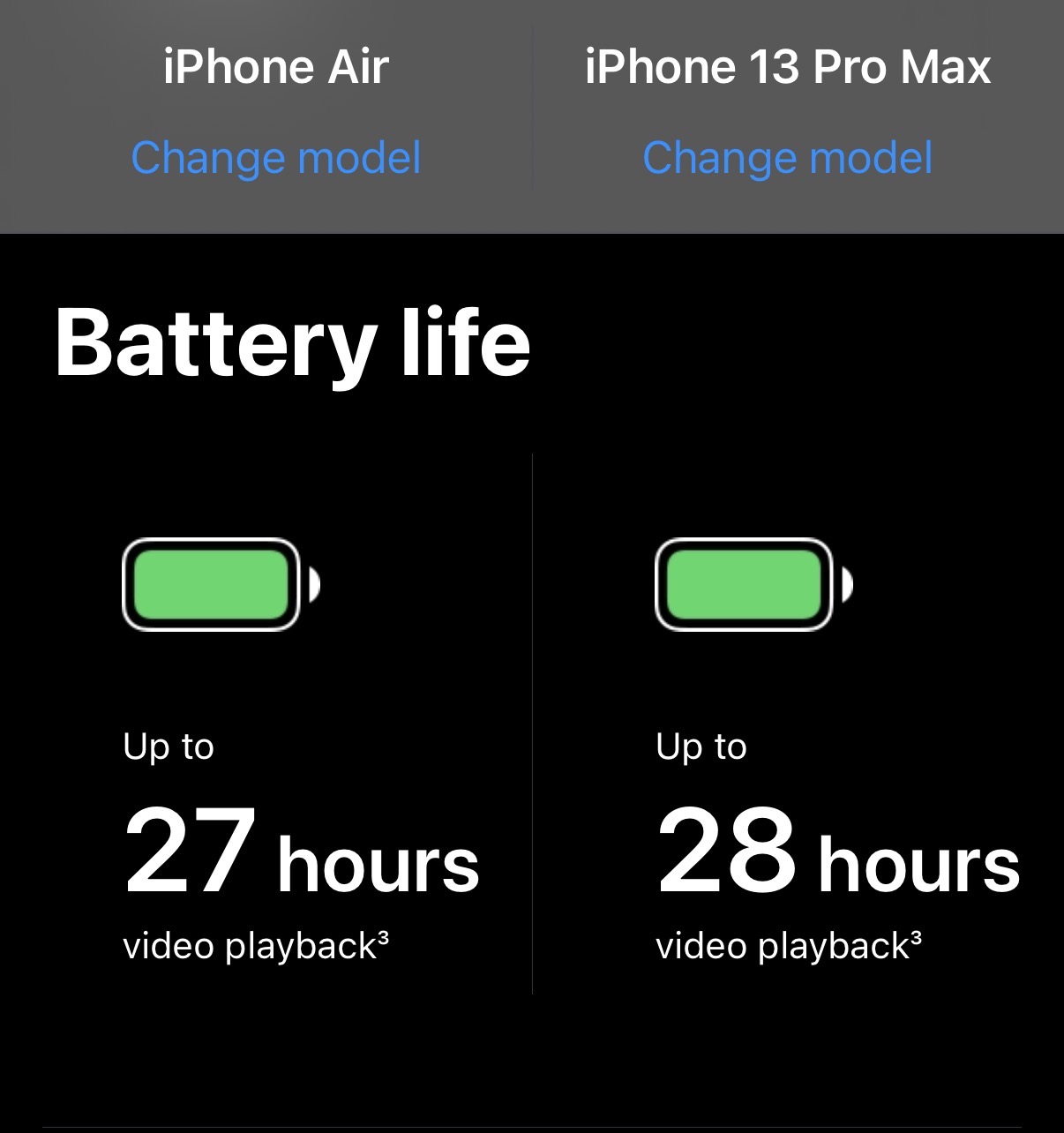 Wow, I didn’t know it’s that close to the 13 Pro Max (which I owned until last year). That phone’s battery was a beast. I’m going to try to order an Air in addition to the Orange Pro Max too.One concern has been battery life expectations, but looking at the iPhone comparisons there’s no need to worry.