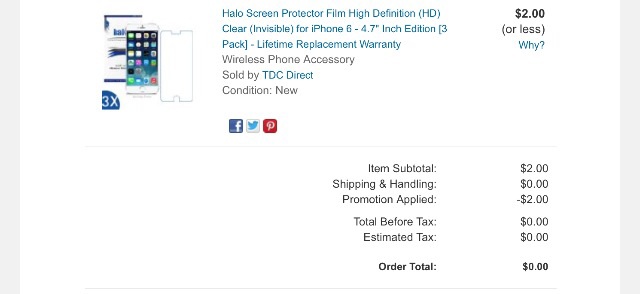 Use the code GOTAPPLE on check out. Should be a free three pack of screen protectors! Disclaimer though -maybe there is a 6+ version, I dunno? Haven't looked too much as I am on my iphone. Also, hopefully they fit? I know some people have received different brands of misfitting screen protectors. However for the cost of free, not much to lose!