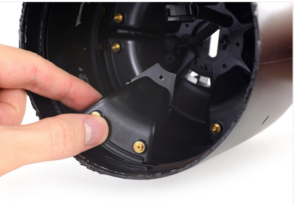 They are then firing through the ports which are directed out of the side intentionally across or ever so slightly above the surface it sits on. Here is a closer look where it goes into the mesh.