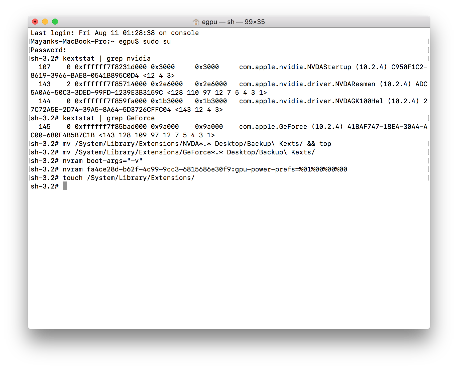 Thanks a ton @nsgr for this and @AppleMacFinder for the ArchLinux solution. Can confirm this works with the Mid-2014 750M MacBook Pro as well - assuming the appropriate kexts are moved (for persistence across boots). This can be useful for High Sierra as well because loaded NVIDIA kexts prevent native AMD eGPU acceleration to work on Macs with discrete NVIDIA graphics: https://egpu.io/forums/mac-setup/nvidia-workaround-for-high-sierra-egpu-acceleration/#post-17121 - decided to convert it into a tiny script for NVIDIA-only macs.