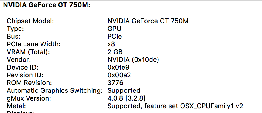 I think your NVArch is GK107M. Name: GK107M [GeForce GT 750M Mac Edition]