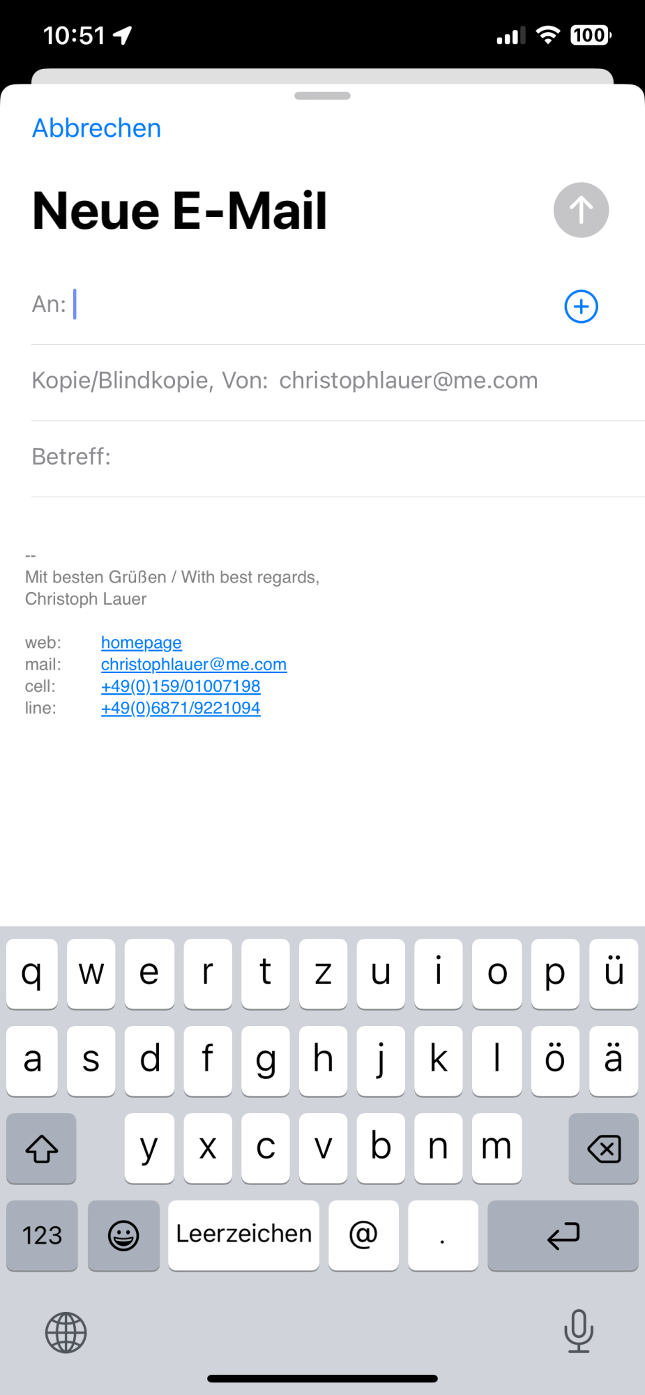 Christoph73 macrumors newbie Original poster Aug 30, 2021 8 5 Germany Jun 15, 2024 #1 You can create formatted mail signatures using Pages (formatted text, links, font), and then copy them into your Mail Signature Settings. Alternatively, you can paste the formatted signature to iOS and iPad using the shared clipboard feature. Last edited: Jun 21, 2024 Reactions: BBDDVV