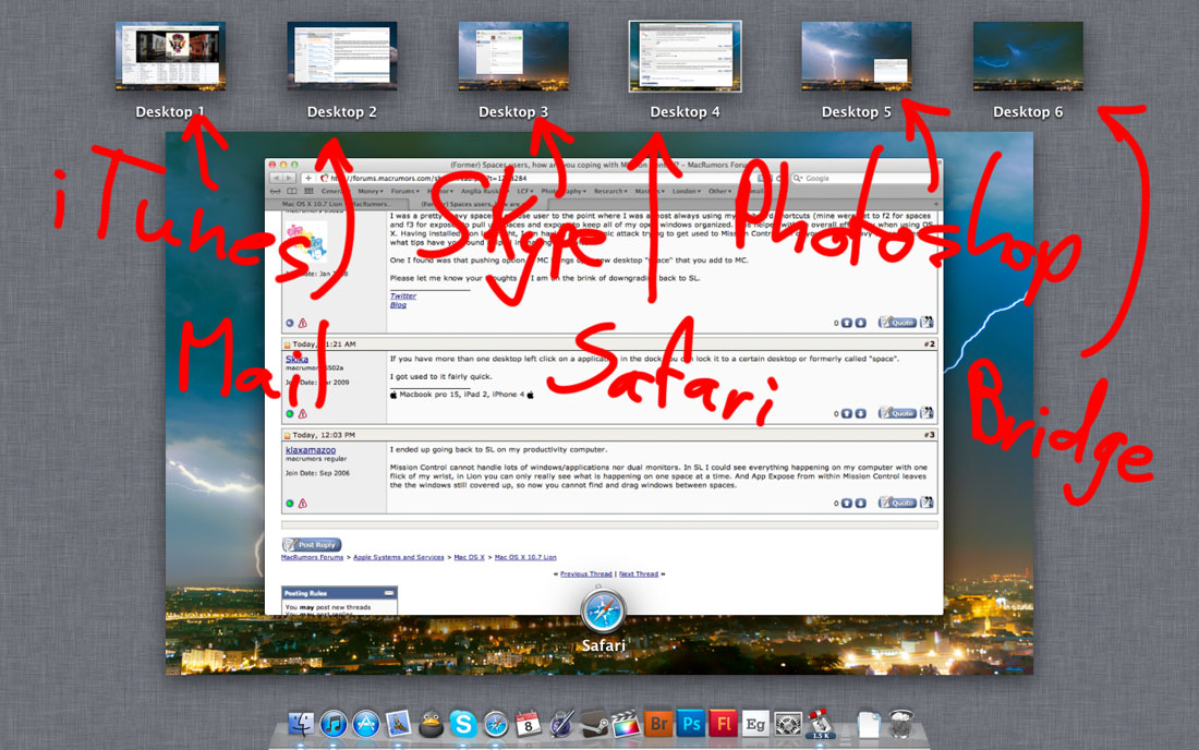 Mission Control is like trying to view your windows through a pinhole. I'm sure it works for "normal" users who only have a few windows open- iTunes, Safari, Mail, etc. But the moment you have more then 2 or 3 windows open for the same application, the whole thing falls apart.