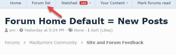 I have to retrain myself to click on forum list, instead of home or the forums link, both of those present the new posts page.