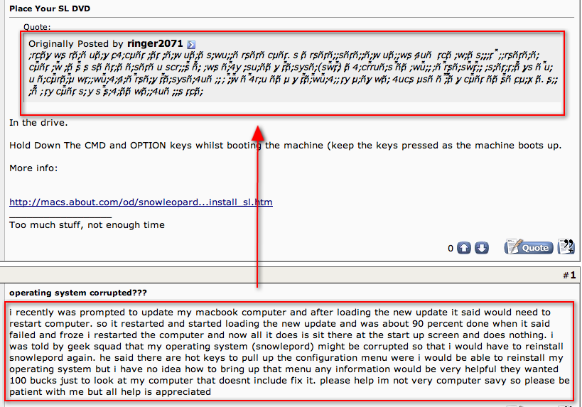 Edit: The strange characters issue appears to have gone away, but the inability to report a post still exists.