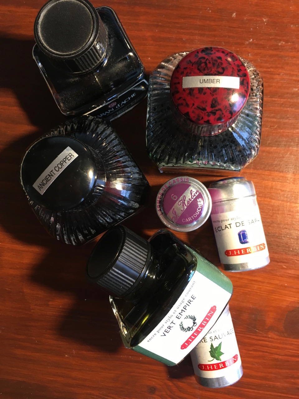 Favourite brand is J Herbin — but Diamine is cheaper and have a lovely Ancient Copper…