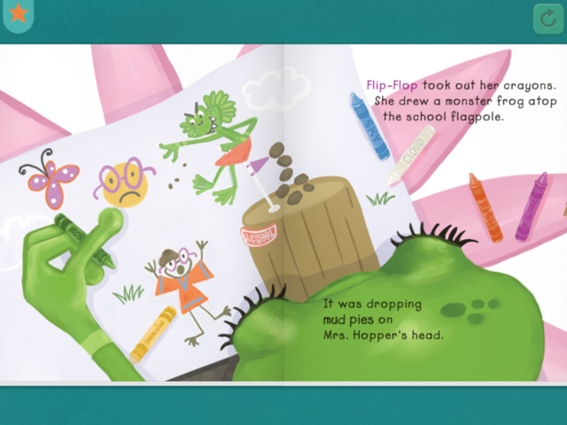 Its time for the class play! Mrs. Hopper has given Flip-Flop the role of Frog Number Three a croaking part! But, Flip-Flop has stage fright, and every rehearsal is a flop. Flip-Flop draws exactly how she feels, including having Mrs. Hopper walk the plank and dressed as a witch. When she gets caught, Flip-Flop and Mrs. Hopper put their heads together to find a new role for Flip-Flop. Will Flip-Flops true talents shine when its show time?