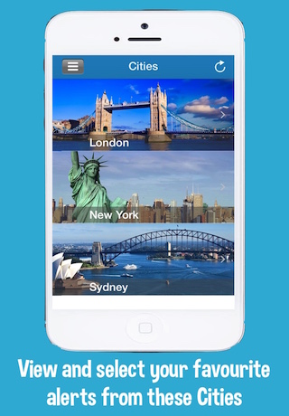 The alerts are Tweets from important Twitter feeds for the cities of London, New York City and Sydney, with more planned for the future.