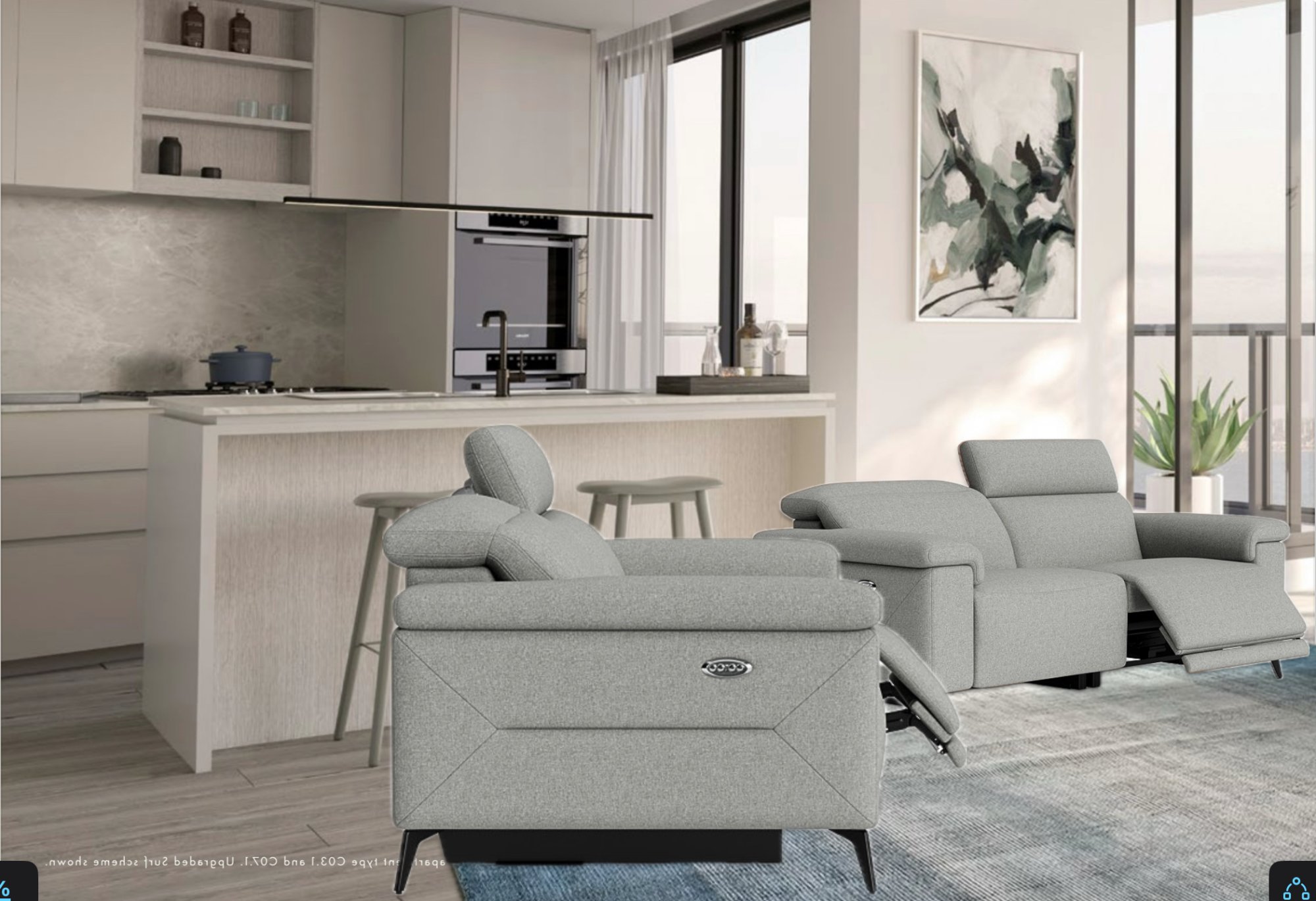 So I’ve used Freeform to combine screenshots of the apartment brochure + Photos/website image subject grabs of the sofa/floormat.